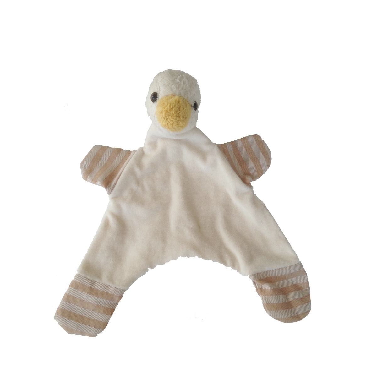 Lappeneendje in bio-katoenLeeftijd: vanaf de geboorteMateriaal: 100% bio-katoen, vulling kop 100% zuivere scheerwolAfmetingen: L 35cm